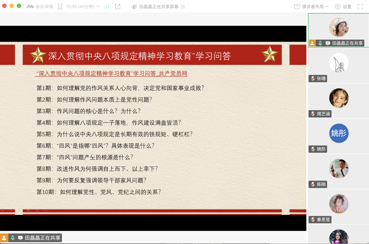 永利yl23411教工第一党支部开展暑期线上党日活动——“深入贯彻中央八项规定精神学习教育”学习交流会