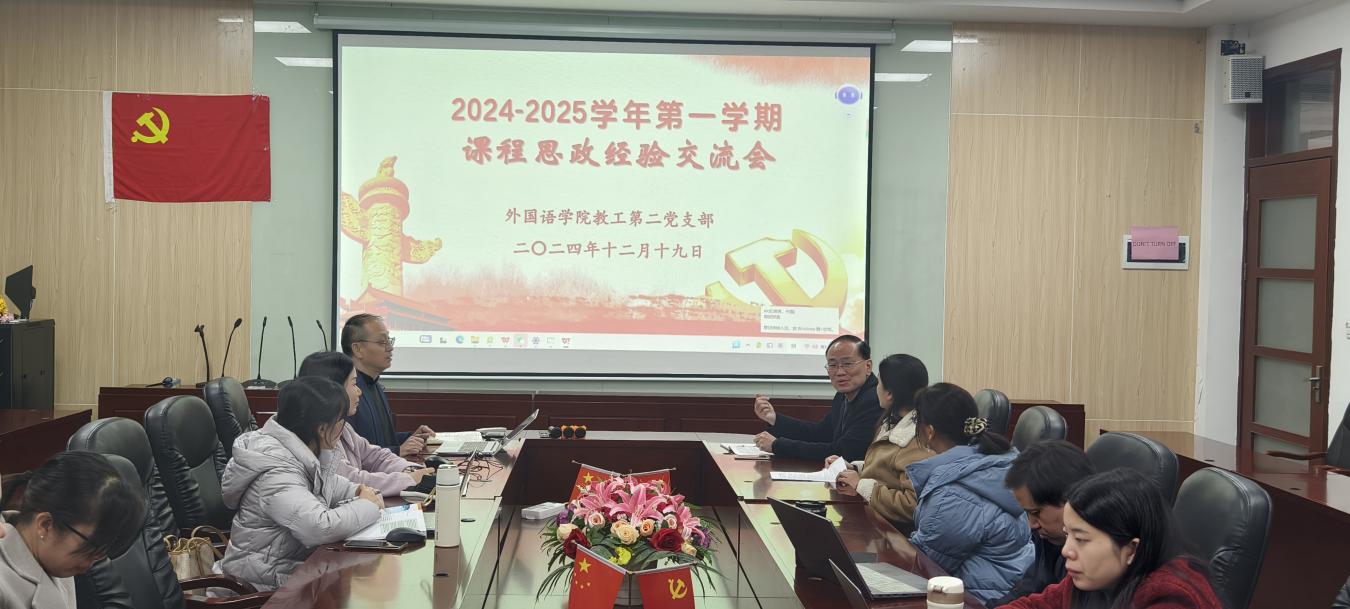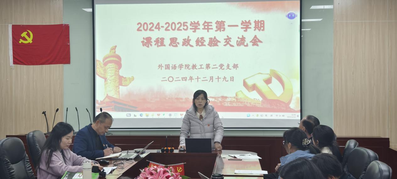 12月19日,永利yl23411教工第二党支部于第二行政楼308室成功举办了课程思政经验交流会。会议由支部书记唐海民主持,麦影虹和范俊英两位老师作为主讲嘉宾,分享了她们在全国高校外语课程思政教学案例大赛中获得特等奖的课程案例设计经验。