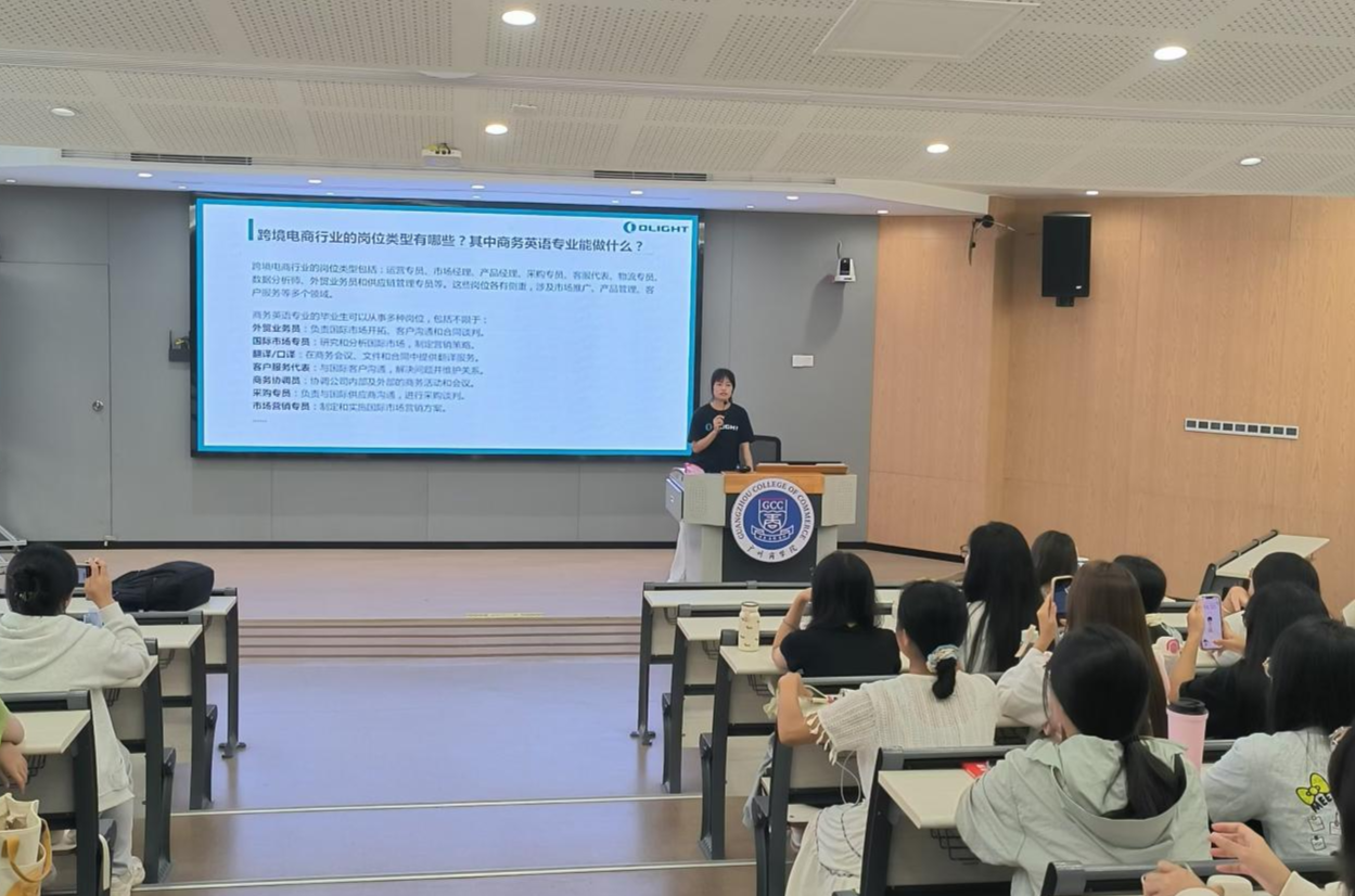在校友分享环节中,校企合作单位深圳傲雷照明有限公司员工、永利yl23411优秀校友李敏焱和成志英在跨境电商领域有着丰富的经验和独到的见解,他们为新生们带来了关于跨境电商前沿趋势和人才能力需求的精彩分享。