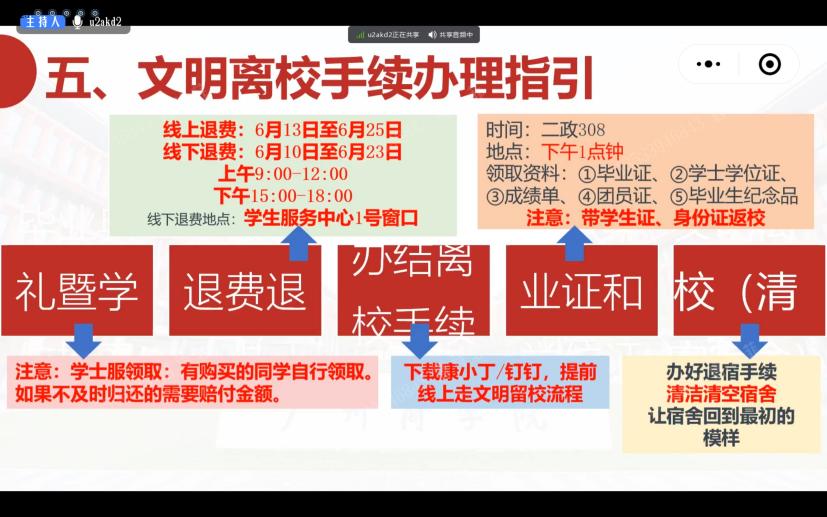 为切实做好永利yl23411,永利yl234112025届毕业生教育管理和文明离校工作,确保毕业生文明、安全、有序离校,永利yl23411于6月16日19:00在腾讯会议平台召开了“永利yl23411,永利yl234112025届毕业生文明离校工作会议”,会议由毕业班辅导员李超老师主讲,参与会议的成员还有毕业班辅导员何沛瑾老师及永利yl23411全体2025届毕业生。
