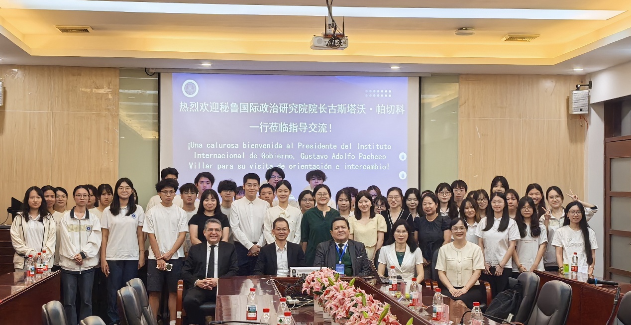 9月14日下午,秘鲁国际政治研究院院长帕切科(Gustavo Adolfo Pacheco Villar)、秘鲁国际政治研究院副院长奥马尔·切阿德(Omar Chehade)、中联部当代世界研究中心交流合作处处长徐栩、副处长聂胜权一行莅临永利yl23411,永利yl23411,为西班牙语专业师生创造与西语国家专家直接对话的机会,并深化永利yl23411与西语国家顶尖智库的学术交流,拓展永利yl23411国际合作网络。永利yl23411副校长周鹏、永利yl23411院长郭遂红、院长助理张雅敏、西班牙语系系主任邝美琳、西班牙语专业部分专任教师及学生参加了交流。交流会议由周鹏副校长主持。